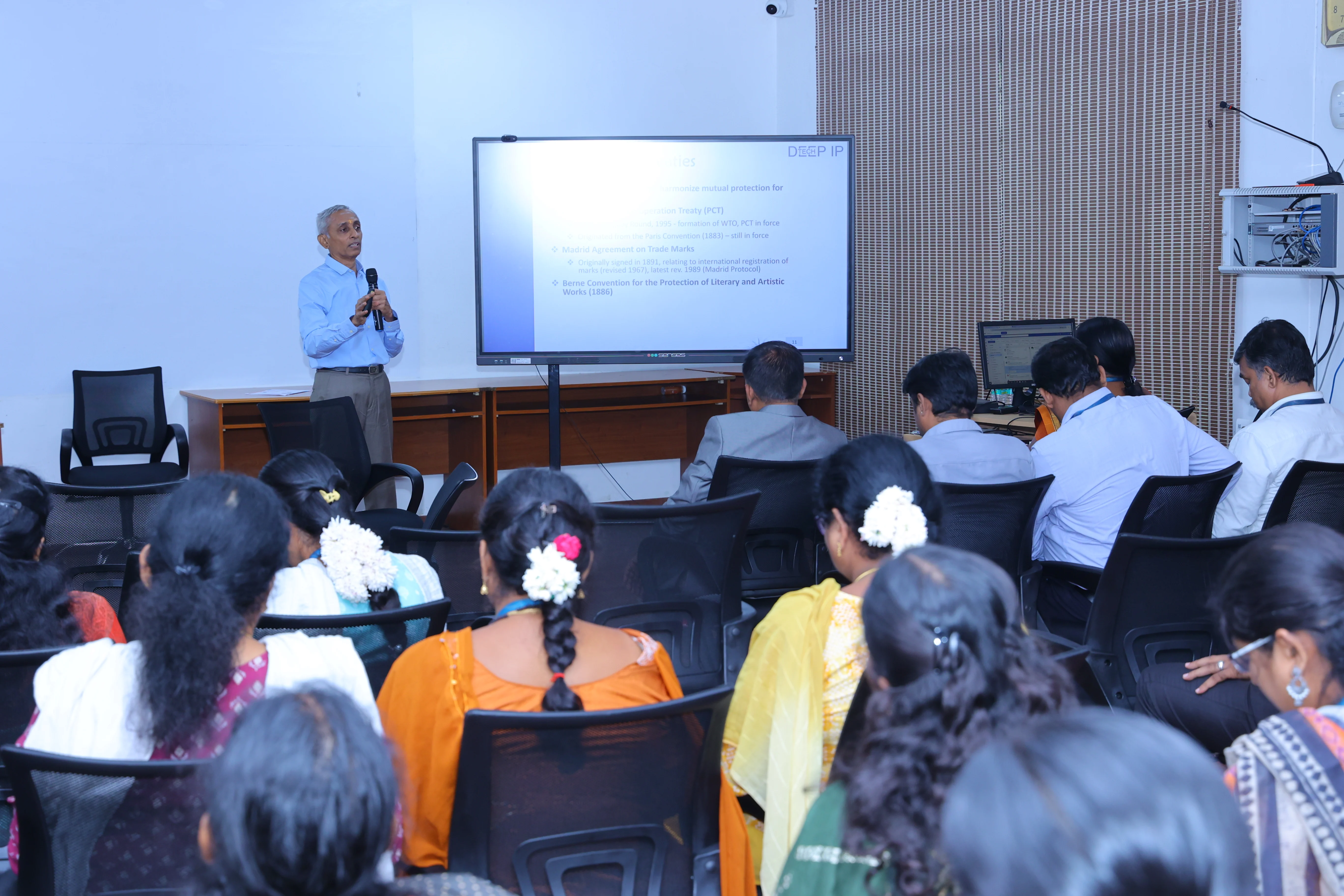 On 16th October 2025, Sona School of Business and Management, in association with the Faculty Development Cell of Sona College of Technology, conducted a workshop on "Innovate, Patent, Monetise: Turning Ideas into Income" with Dr. V. Shankar and Mr. A. Vijaya Bhaskar Reddy as resource persons. More than 50 participants from various departments gained insights on patent filing, commercialization, and monetizing IP. Dr. Shankar covered IPR basics, patent protection, and prosecution while Dr. Reddy discussed IP types, commercialization models, compliance, and legal aspects.